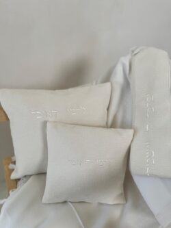 סט כיסויים מבד אריג קטיפתי חלק בגוון שמנת בתוספת ריקמה שמנת בהיר הנתנת לשינוי ע״י הלקוח.