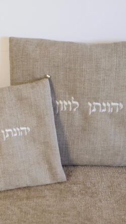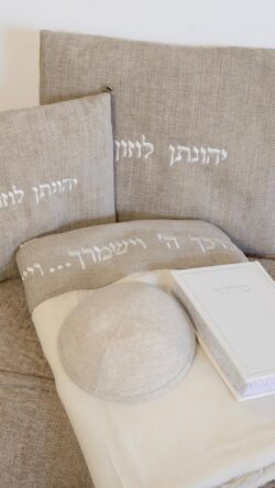 סט כיסויים מבד אריג בגוון פשתן בעיצוב בלעדי להתקדשת.